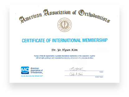 (현)대한치과교정학회 정보통신 위원(현)대한치과교정학회 정회원, 인정의(현)세계교정의사연맹 (WFO) 펠로우미국 인비절라인 (Invislign) 투명교정 교육이수독일 인코그니토 (Incognito) 설측교정 교육이수